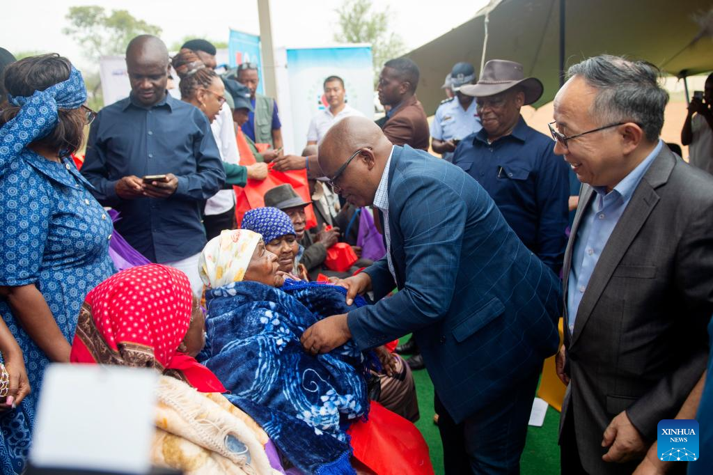 GABORONE, 2 noviembre, 2025 (Xinhua) -- Imagen del 1 de noviembre de 2025 del ministro de Justicia y Servicios Penitenciarios de Botsuana, Nelson Ramaotwana (2-d-frente) y el embajador de China en Botsuana, Fan Yong (d), saludando a adultos mayores locales, durante un programa conjunto de atención médica y consultas con especialistas para residentes mayores, en la aldea de Mokolodi, a unos 18 kilómetros al suroeste de Gaborone, Botsuana. Ramaotwana elogió el sábado al 17 grupo del equipo médico chino en Botsuana y a la Asociación Benéfica China en Botsuana por sus esfuerzos y apoyo para fortalecer la salud comunitaria. (Xinhua/Tshekiso Tebalo)
