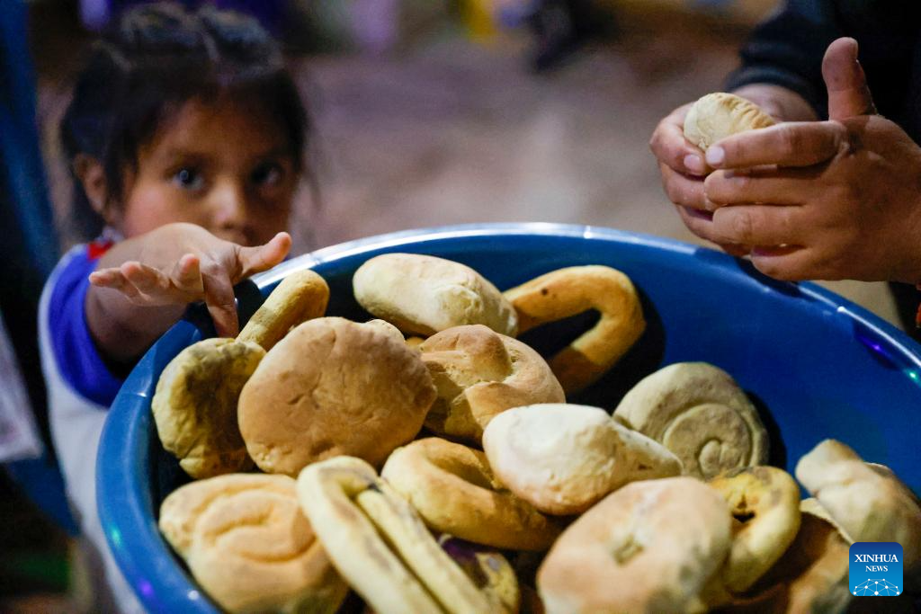 IMBABURA, 2 noviembre, 2025 (Xinhua) -- Imagen del 31 de octubre de 2025 de una niña de la comunidad de Turuco tomando un pan tradicional durante los preparativos para el Día de los Difuntos, en la provincia de Imbabura, en el norte de Ecuador. (Xinhua/Ricardo Landeta)