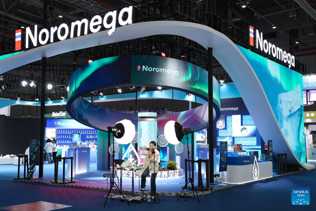 SHANGHAI, 4 noviembre, 2025 (Xinhua) -- Trabajadores realizan una transmisión en vivo en el área de exposición de Equipos Médicos y Productos para el Cuidado de la Salud de la VIII Exposición Internacional de Importaciones de China (CIIE, por sus siglas en inglés), en Shanghai, en el este de China, el 4 de noviembre de 2025. La VIII CIIE se celebrará en Shanghai del 5 al 10 de noviembre. (Xinhua/Fan Yuqing)