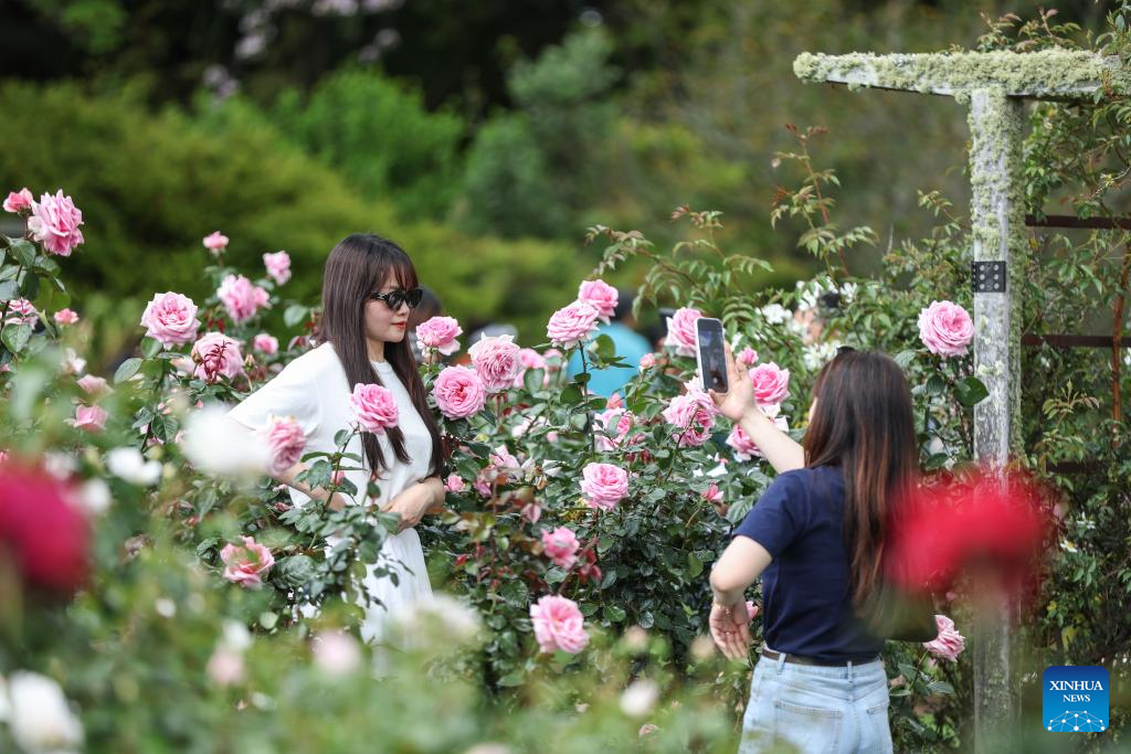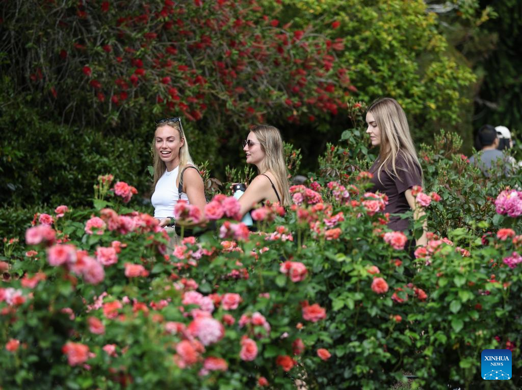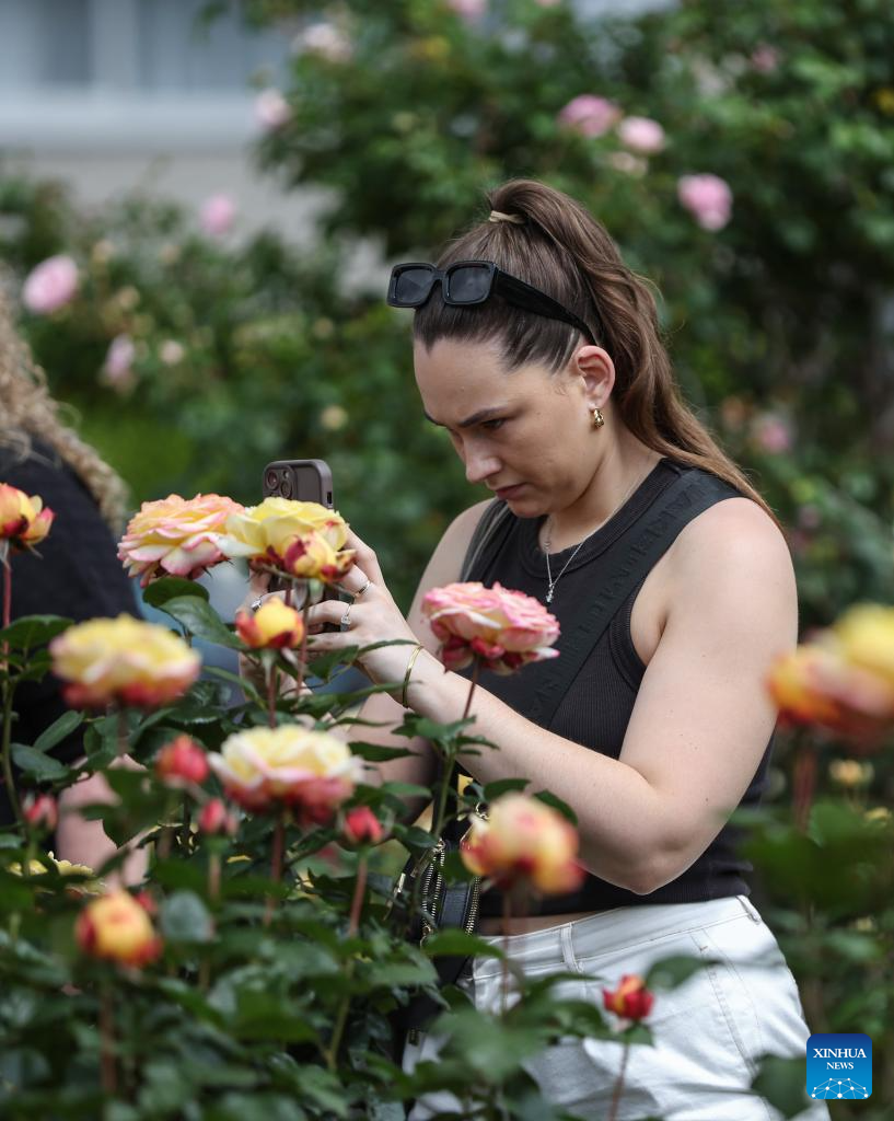 AUCKLAND, 9 noviembre, 2025 (Xinhua) -- Personas visitan el Jardín de Rosas de Parnell, en Auckland, Nueva Zelanda, el 9 de noviembre de 2025. (Xinhua/Long Lei)