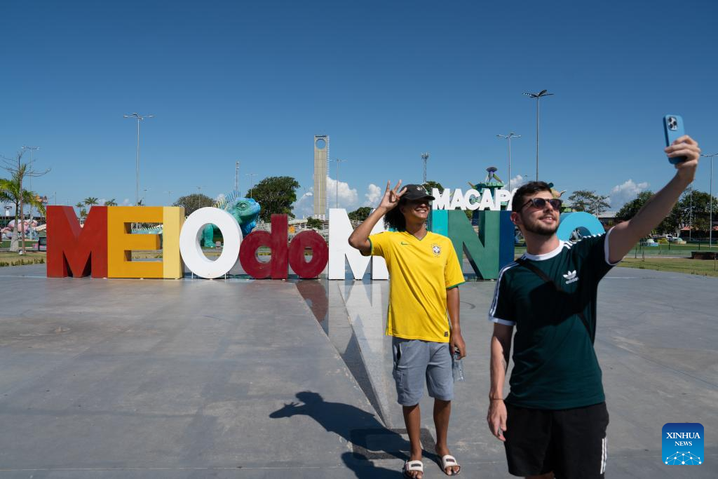 AMAPA, 10 noviembre, 2025 (Xinhua) -- Imagen del 9 de noviembre de 2025 de visitantes tomándose una fotografía cerca del Monumento Marco Zero, un punto de referencia que marca el Ecuador, en Macapá, capital del estado de Amapá, Brasil. Hoy, mientras la atención mundial se centra en la conservación del Amazonas, Macapá se erige como un claro ejemplo de armonía entre la vida humana y la naturaleza. (Xinhua/Wang Tiancong)