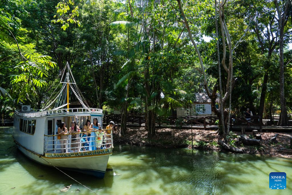 AMAPA, 10 noviembre, 2025 (Xinhua) -- Imagen del 9 de noviembre de 2025 de visitantes tomando un recorrido en bote en el Museo de Sacaca, en Macapá, capital del estado de Amapá, Brasil. Hoy, mientras la atención mundial se centra en la conservación del Amazonas, Macapá se erige como un claro ejemplo de armonía entre la vida humana y la naturaleza. (Xinhua/Wang Tiancong)