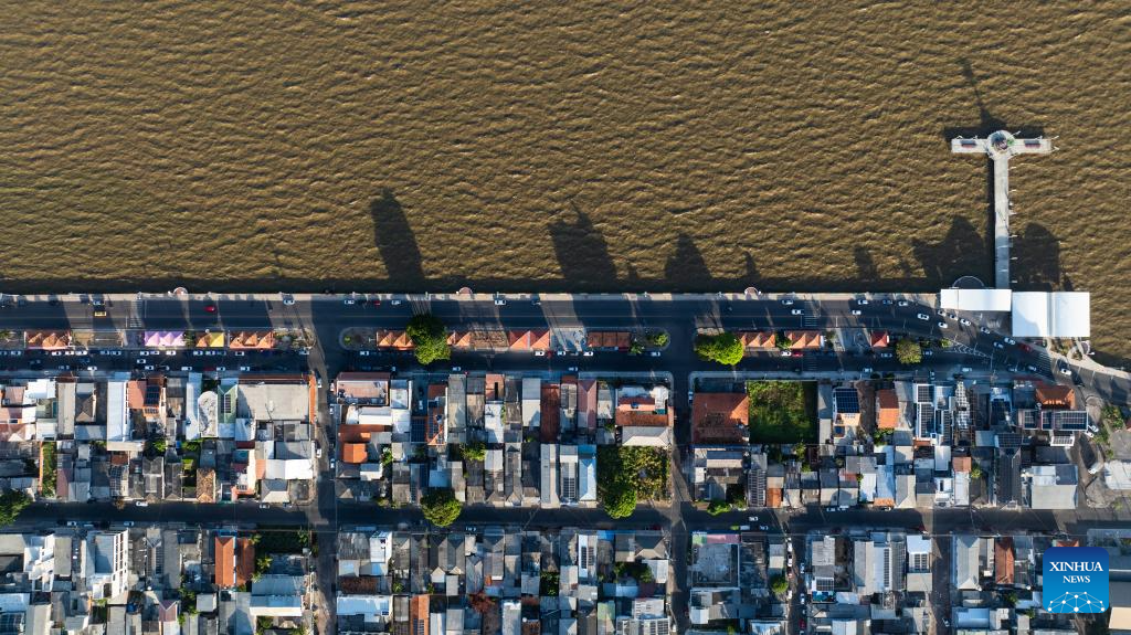 AMAPA, 10 noviembre, 2025 (Xinhua) -- Vista aérea tomada con un dron el 9 de noviembre de 2025 del punto donde la ciudad de Macapá se encuentra con el río Amazonas en el estado de Amapá, Brasil. Hoy, mientras la atención mundial se centra en la conservación del Amazonas, Macapá se erige como un claro ejemplo de armonía entre la vida humana y la naturaleza. (Xinhua/Wang Tiancong)
