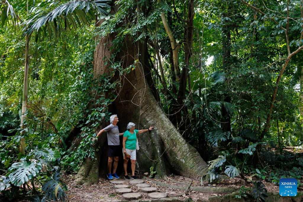BELEM, 13 noviembre, 2025 (Xinhua) -- Personas observan una ceiba en el Parque Zoobotánico del Museo Paraense Emílio Goeldi, en Belém, estado de Pará, Brasil, el 13 de noviembre de 2025. (Xinhua/Claudia Martini)