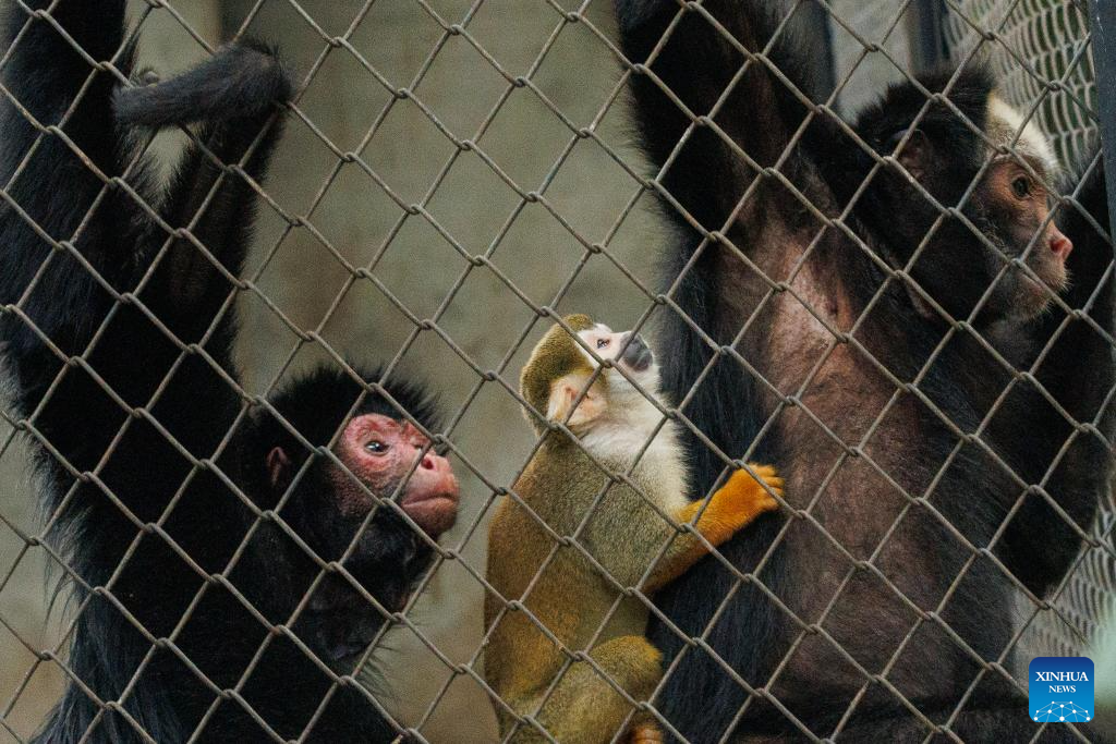 BELEM, 13 noviembre, 2025 (Xinhua) -- Un coatá negro (i) y un macaco araña de cara blanca (d) son vistos en el Parque Zoobotánico del Museo Paraense Emílio Goeldi, en Belém, estado de Pará, Brasil, el 13 de noviembre de 2025. (Xinhua/Claudia Martini)