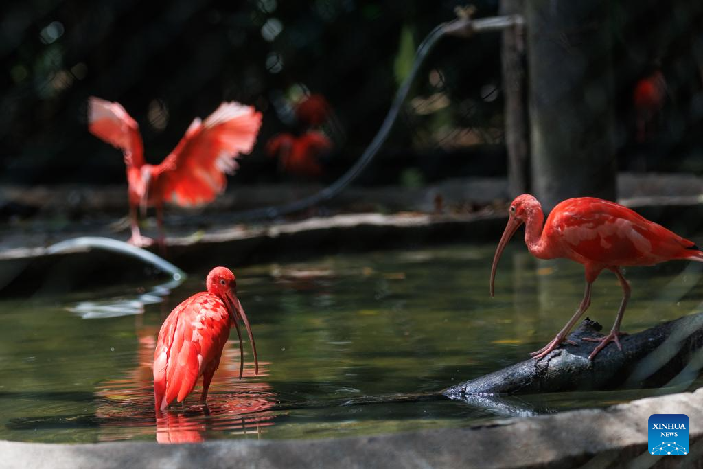 BELEM, 13 noviembre, 2025 (Xinhua) -- Flamencos del Caribe son vistos en el Parque Zoobotánico del Museo Paraense Emílio Goeldi, en Belém, estado de Pará, Brasil, el 13 de noviembre de 2025. (Xinhua/Claudia Martini)