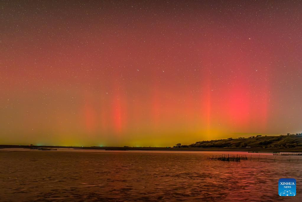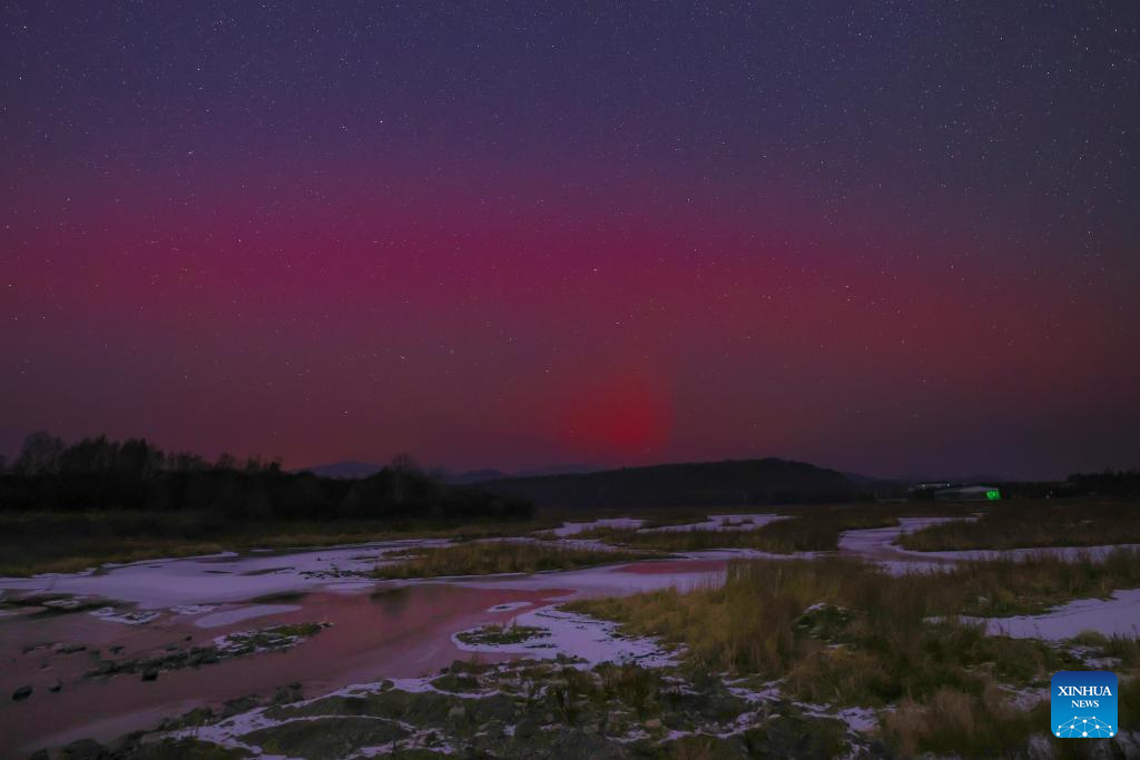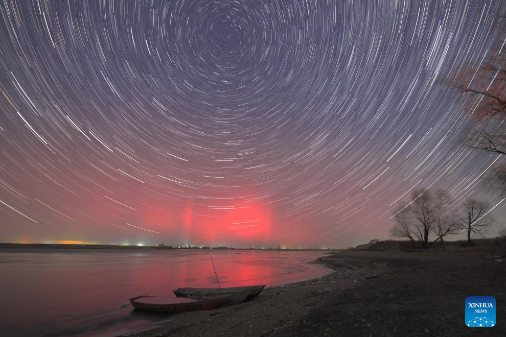 HARBIN, 13 noviembre, 2025 (Xinhua) -- Imagen del 12 de noviembre de 2025 de la aurora boreal vista, en la ciudad de Heihe, en la provincia de Heilongjiang, en el noreste de China. (Xinhua/Qian Boyu)