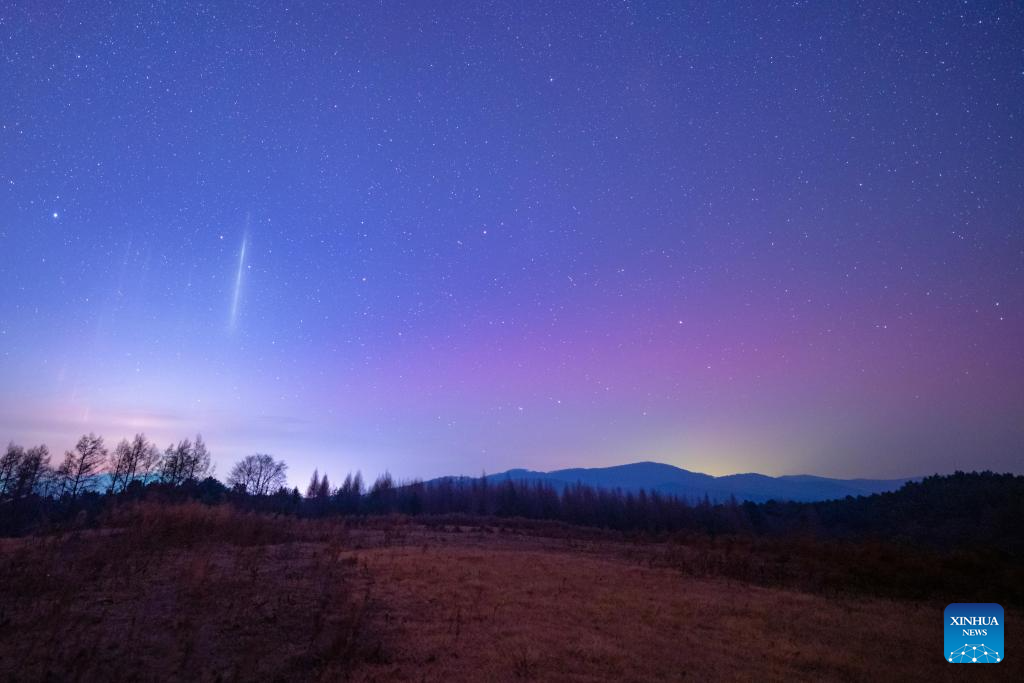 HARBIN, 13 noviembre, 2025 (Xinhua) -- Imagen del 12 de noviembre de 2025 de la aurora boreal vista, en la ciudad de Yichun, en la provincia de Heilongjiang, en el noreste de China. (Xinhua/Li Jiaxing)