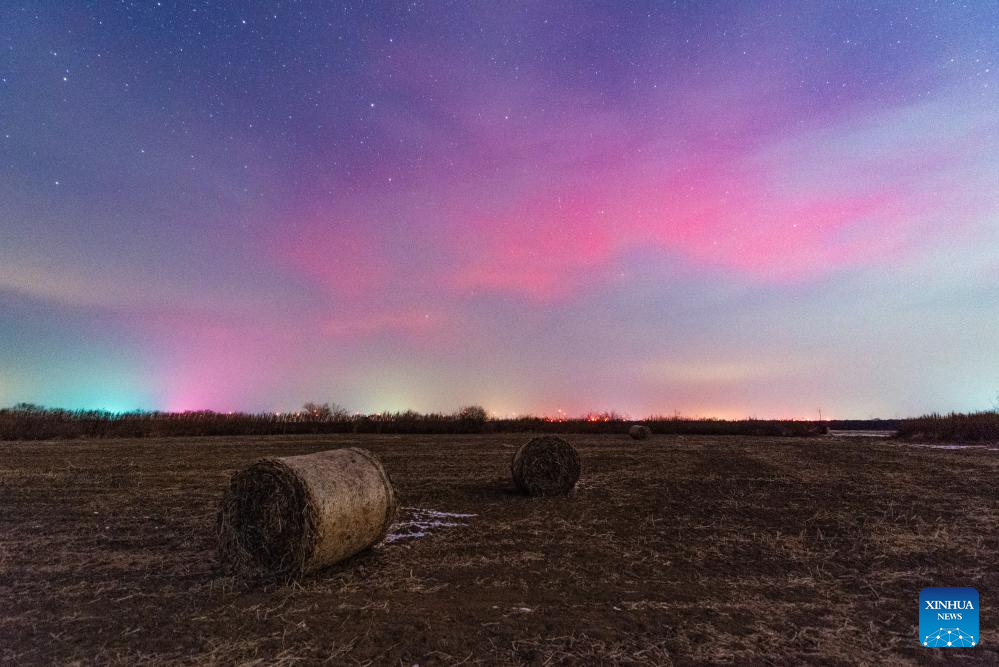 HARBIN, 13 noviembre, 2025 (Xinhua) -- Imagen del 12 de noviembre de 2025 de la aurora boreal vista, en la ciudad de Daqing, en la provincia de Heilongjiang, en el noreste de China. (Xinhua/Liu Wei)