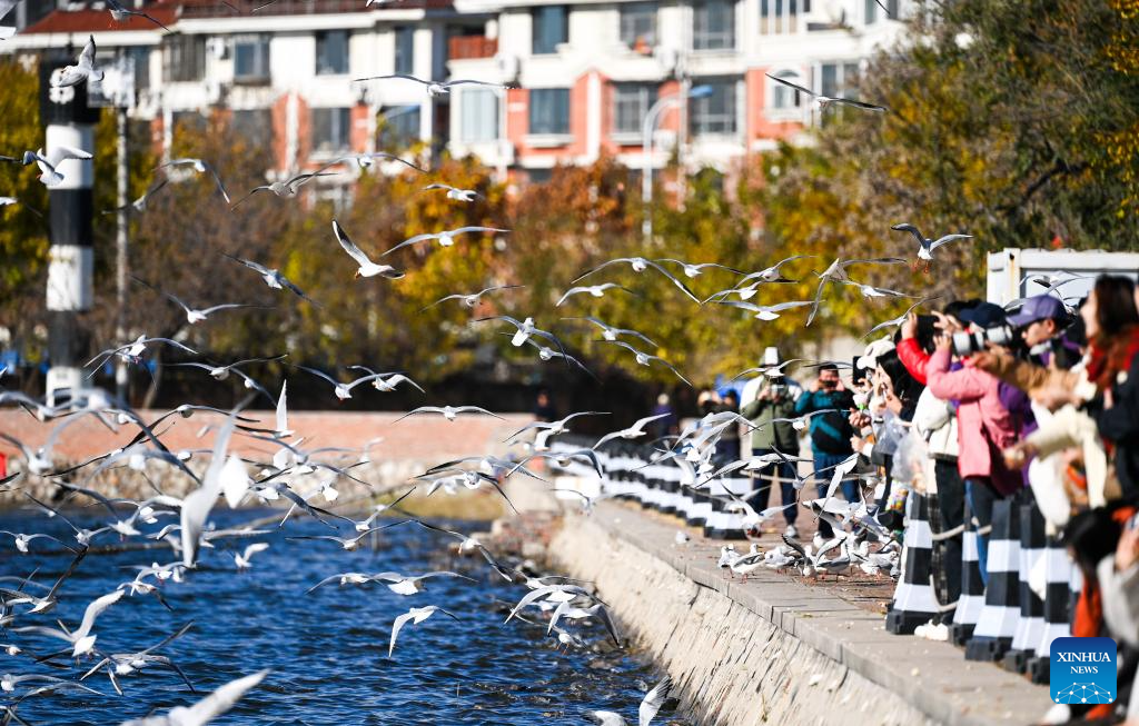 Gaviotas en el río Haihe atrae a numerosos visitantes