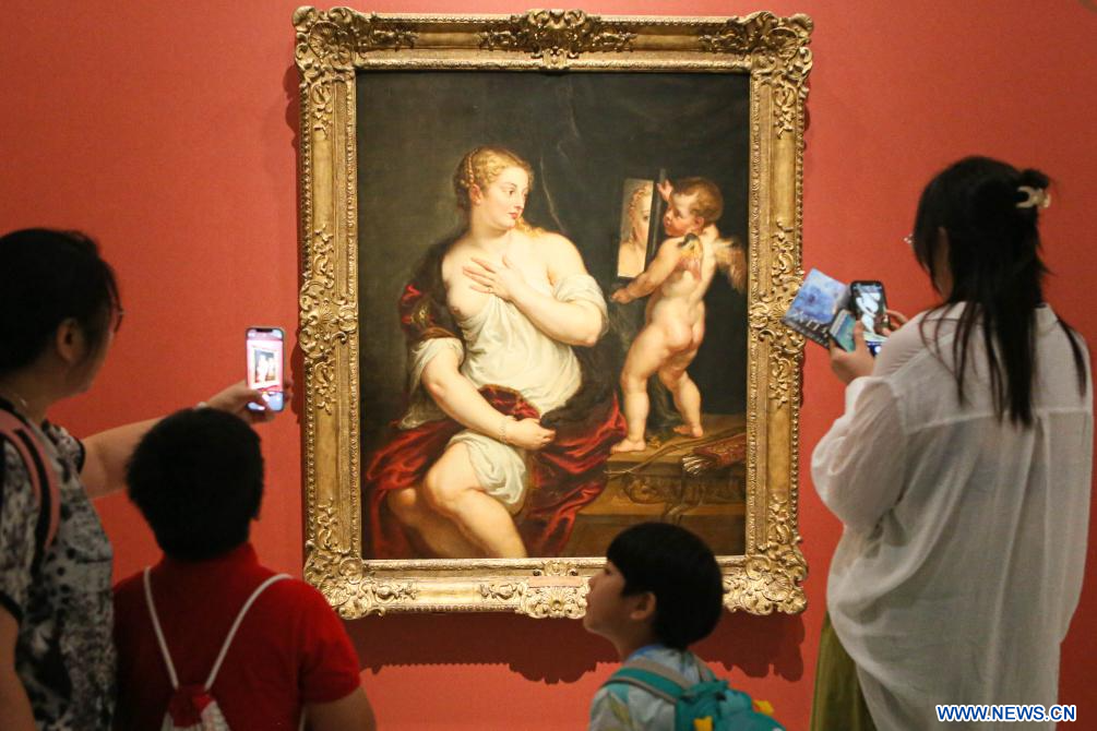 SHANGHAI, 14 julio, 2023 (Xinhua) -- Imagen del 13 de julio de 2023 de visitantes tomando fotografías de la pintura "Venus y Cupido" de Pedro Pablo Rubens durante la exposición "Los Grandes de Seis Siglos: Obras Maestras del Museo Nacional Thyssen-Bornemisza" en el Museo de Arte de Pudong (MAP), en Shanghai, en el este de China. La exposición, que presenta una selección de 70 pinturas que abarcan seis siglos, abrió al público en el MAP el 22 de junio de 2023 y durará hasta el 12 de noviembre de este año. (Xinhua/Xin Mengchen)