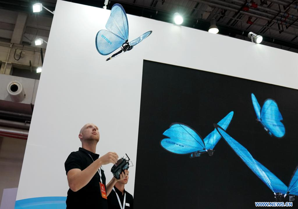 BEIJING, 18 agosto, 2023 (Xinhua) -- Imagen del 17 de agosto de 2023 de una mariposa biónica vista en la Conferencia Mundial de Robots 2023, en Beijing, capital de China. La Conferencia Mundial de Robots 2023 se lleva a cabo del 16 al 22 de agosto en Beijing. (Xinhua/Zhang Chenlin)