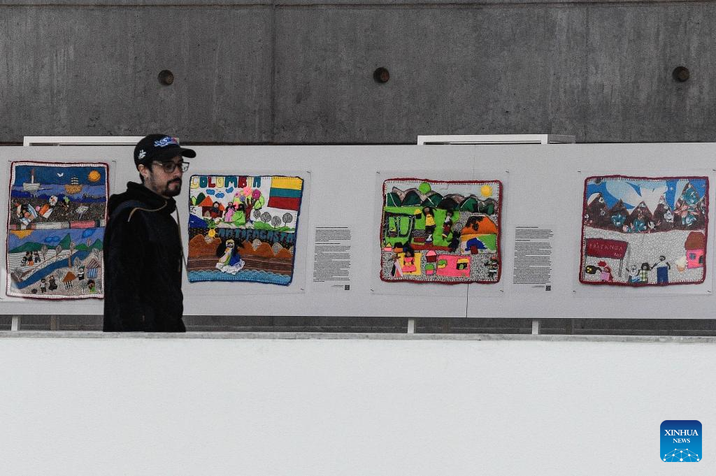 SANTIAGO, 8 mayo, 2024 (Xinhua) -- Un hombre visita la exposición Hilos Fronterizos en el Centro Cultural La Moneda, en Santiago, capital de Chile, el 8 de mayo de 2024. (Xinhua/Jorge Villegas)