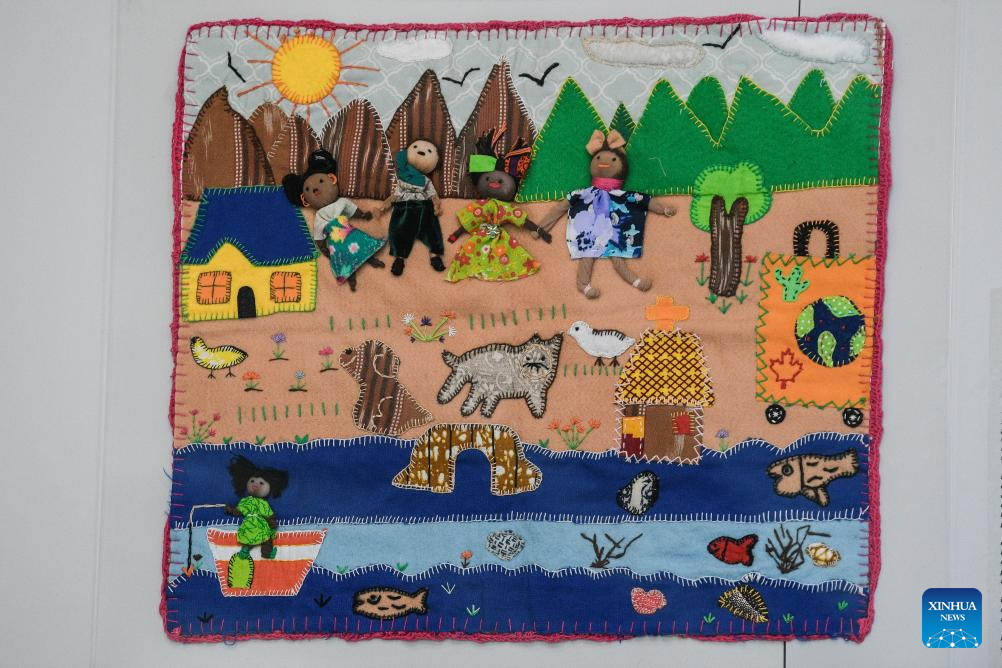SANTIAGO, 8 mayo, 2024 (Xinhua) -- Una obra es exhibida en la exposición Hilos Fronterizos en el Centro Cultural La Moneda, en Santiago, capital de Chile, el 8 de mayo de 2024. (Xinhua/Jorge Villegas)