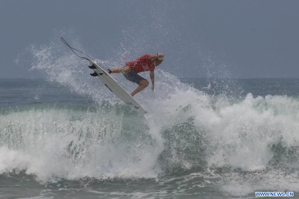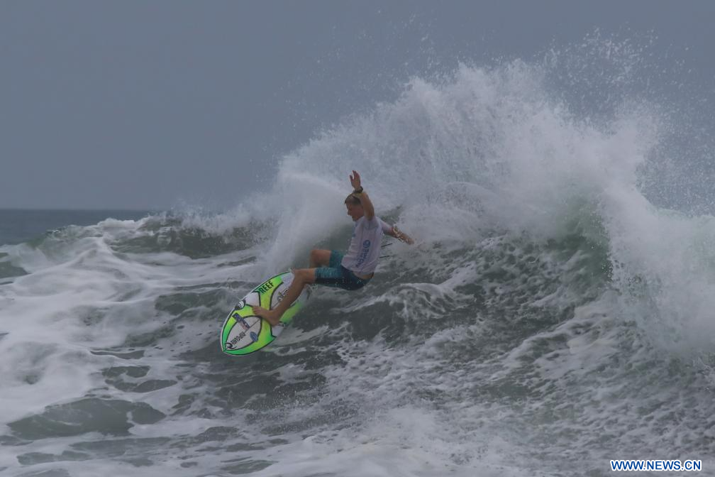 LA LIBERTAD, 12 mayo, 2024 (Xinhua) -- Dane Henry, de Australia, compite en la categoría Sub-18 masculino durante la final del Campeonato Mundial Juvenil de Surf 2024 organizado por la Asociación Internacional de Surf (ISA, por sus siglas en inglés) en la playa La Bocana, en el departamento de La Libertad, El Salvador, el 12 de mayo de 2024. (Xinhua/Alexander Peña)