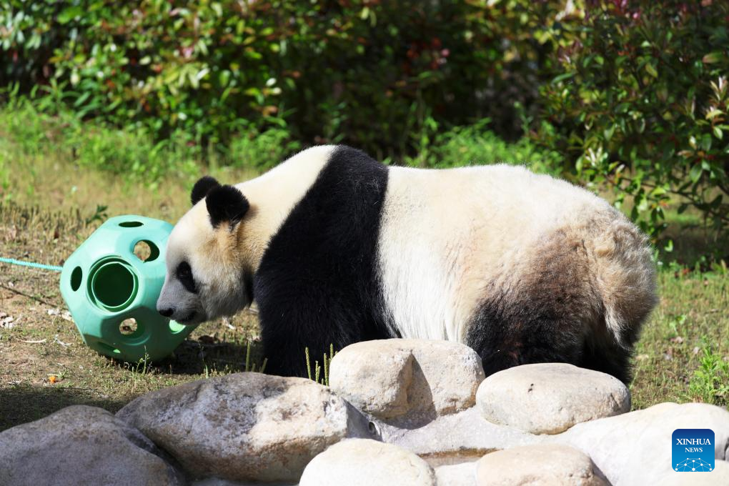 NANJING, 13 mayo, 2024 (Xinhua) -- Imagen del 12 de mayo de 2024 del panda gigante "Tuanzi" visto en el zoológico de vida silvestre del lago Ziqing de Tangshan, en Nanjing, la capital de la provincia de Jiangsu, en el este de China. (Xinhua/Zhao Jiulong)