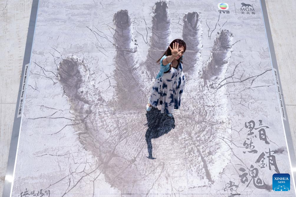 MACAO, 14 mayo, 2024 (Xinhua) -- Una visitante posa para fotografías en la Exposición de Armas y Trajes Dramáticos Wuxia de Jin Yong, celebrada en Macao, en el sur de China, el 14 de mayo de 2024. Esta exposición revive las escenas icónicas de ocho renombrados dramas televisivos de wuxia del fallecido novelista chino de artes marciales Louis Cha Leung-yung, más conocido por su seudónimo Jin Yong. (Xinhua/Cheong Kam Ka)