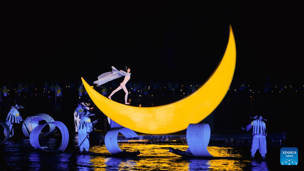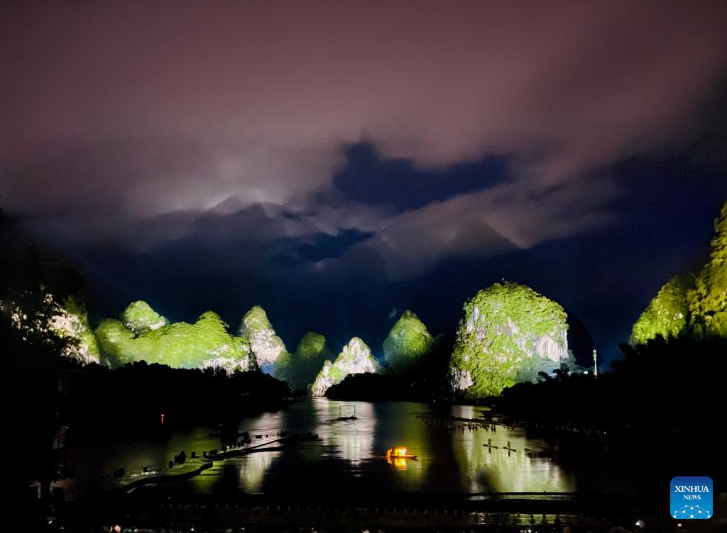 NANNING, 14 mayo, 2024 (Xinhua) -- Imagen del 13 de septiembre de 2023 de una escena de "Impresión Liu Sanjie", una presentación temática al aire libre realizada en el distrito de Yangshuo de la región autónoma de la etnia zhuang de Guangxi, en el sur de China. (Xinhua)