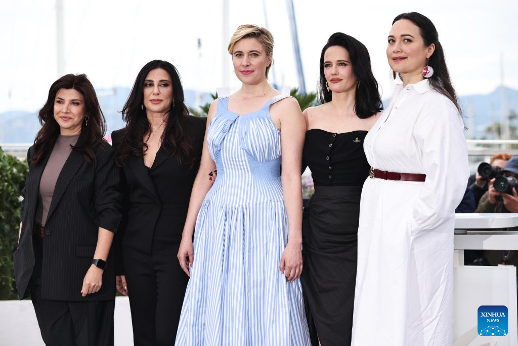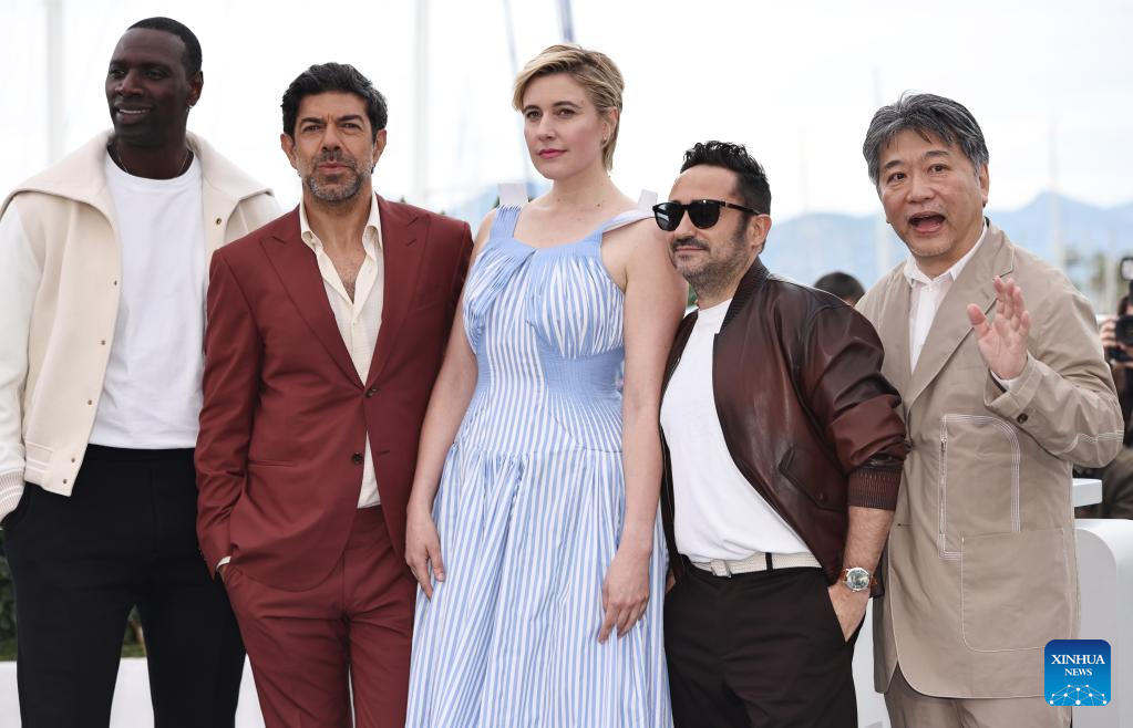 CANNES, 14 mayo, 2024 (Xinhua) -- Greta Gerwig (c), presidenta del jurado del 77 Festival de Cine de Cannes, y otros miembros del jurado posan en una sesión fotográfica previo a la ceremonia de inauguración del 77 Festival de Cine de Cannes, en Cannes, en el sur de Francia, el 14 de mayo de 2024. (Xinhua/Gao Jing)