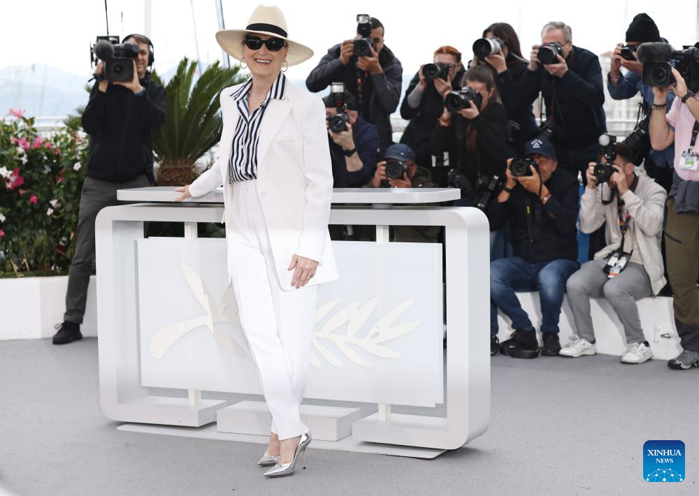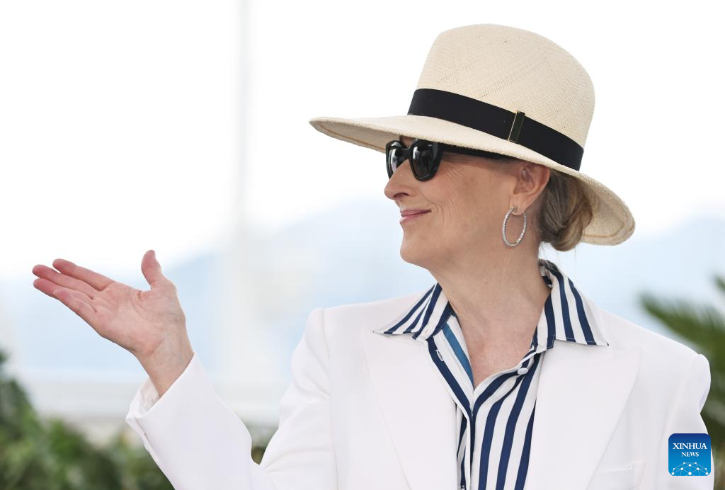 CANNES, 14 mayo, 2024 (Xinhua) -- Meryl Streep, que va a recibir la Palma de Oro Honoraria, posa en una sesión fotográfica previo a la ceremonia de inauguración del 77 Festival de Cine de Cannes, en Cannes, en el sur de Francia, el 14 de mayo de 2024. (Xinhua/Gao Jing)