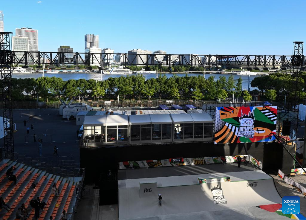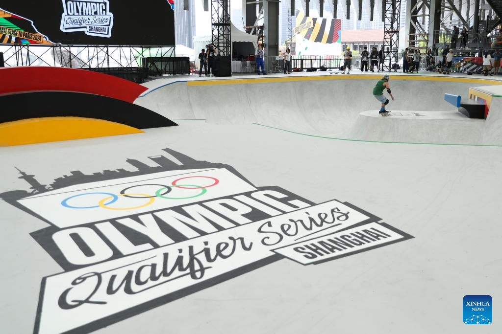 SHANGHAI, 15 mayo, 2024 (Xinhua) -- Imagen del 15 de mayo de 2024 del sitio de la competencia de skateboarding previo a la Serie de Clasificación Olímpica de Shanghai, en Shanghai, en el este de China. La Serie de Clasificación Olímpica de estilo libre de BMX, skateboarding, breaking y escalada deportiva se llevará a cabo en un parque urbano en la ribera de Huangpu del 16 al 19 de mayo de 2024. (Xinhua/He Changshan)