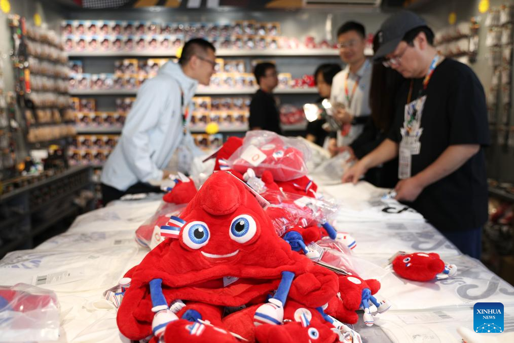 SHANGHAI, 15 mayo, 2024 (Xinhua) -- Mascotas oficiales de los Juegos Olímpicos de París 2024 son vistas en una tienda oficial previo a la Serie de Clasificación Olímpica de Shanghai, en Shanghai, en el este de China, el 15 de mayo de 2024. La Serie de Clasificación Olímpica de estilo libre de BMX, skateboarding, breaking y escalada deportiva se llevará a cabo en un parque urbano en la ribera de Huangpu del 16 al 19 de mayo de 2024. (Xinhua/Xu Yanan)