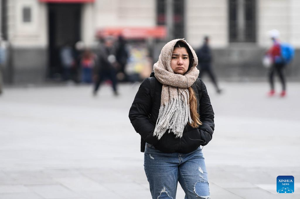 SANTIAGO, 15 mayo, 2024 (Xinhua) -- Una mujer porta ropa abrigadora mientras camina por una calle durante una ola de frío, en Santiago, capital de Chile, el 15 de mayo de 2024. (Xinhua/Jorge Villegas)