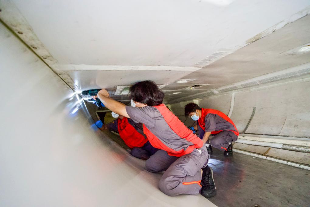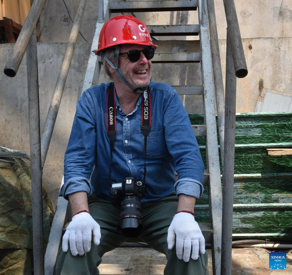 GUIYANG, 14 mayo, 2024 (Xinhua) -- Imagen del 27 de abril de 2024 del fotógrafo francés Gregoire de Gaulle en las obras de construcción del puente del Gran Cañón de Huajiang, en la provincia de Guizhou, en el suroeste de China. (Xinhua/Luo Fei)