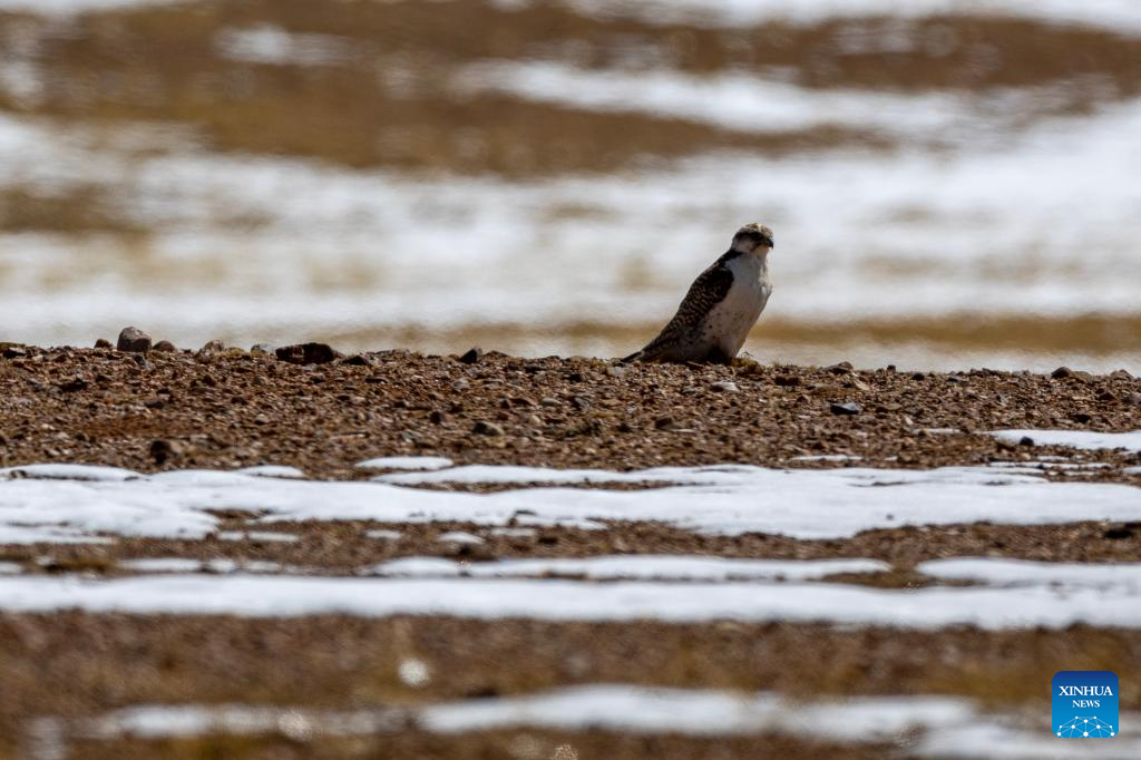 NAGQU, 13 mayo, 2024 (Xinhua) -- Imagen del 9 de mayo de 2024 de un halcón peregrino en la Reserva Natural Nacional de Changtang, en el distrito de Nyima de la ciudad de Nagqu, en la región autónoma de Xizang, en el suroeste de China. Apodada el "paraíso de los animales salvajes", la Reserva Natural Nacional de Changtang alberga más de 30 tipos de animales salvajes incluidos en el catálogo de protección a nivel nacional de China, entre ellos antílopes tibetanos y yaks salvajes.(Xinhua/Jiang Fan)