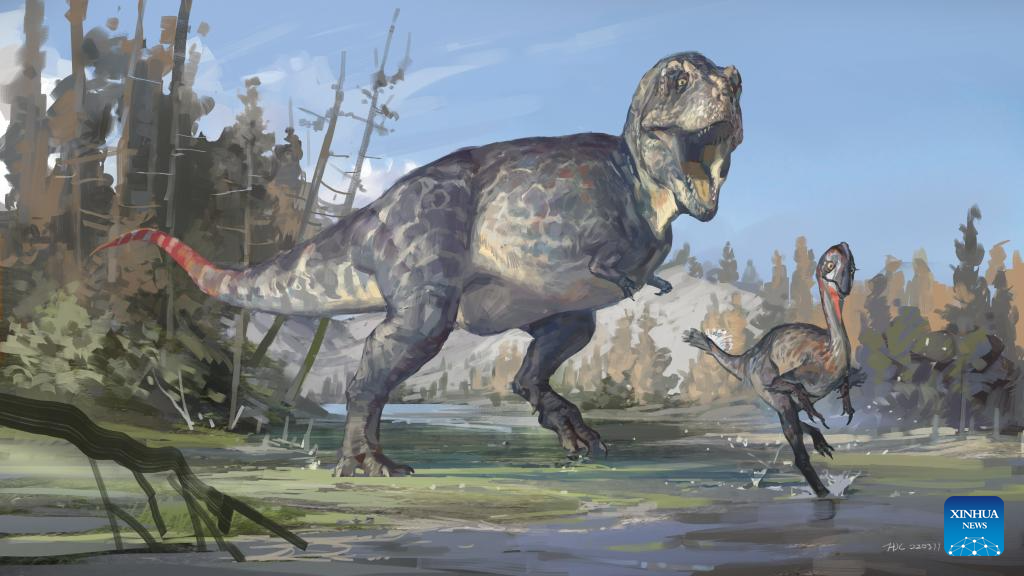 GUANGZHOU, 16 mayo, 2024 (Xinhua) -- Imagen sin fechar de una imagen restaurada de Tyrannosauroidea, un dinosaurio depredador bípedo que data de hace 70 a 66 millones de años. Cuatro grandes dientes de dinosaurios desenterrados en la provincia de Guangdong han sido confirmados por científicos chinos y pertenecen al grupo Tyrannosauroidea que data de hace 70 y 66 millones de años, lo que la convierte en la evidencia fósil más australde este taxón en China. (Xinhua/Huang Jiali)