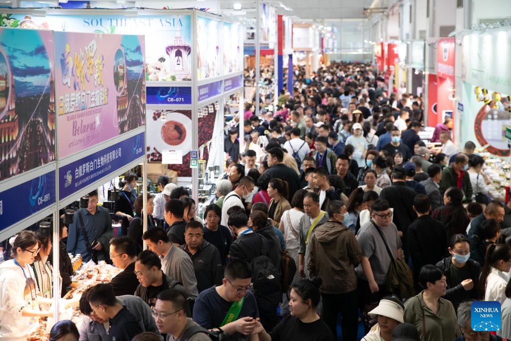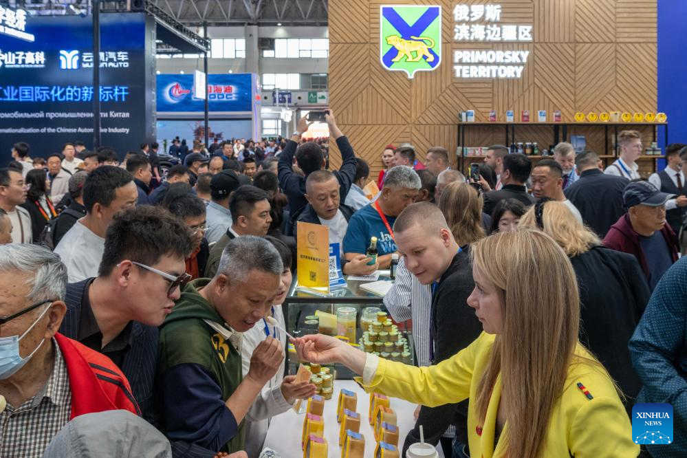 HARBIN, 18 mayo, 2024 (Xinhua) -- Personas visitan la VIII Exposición China-Rusia, en Harbin, en la provincia de Heilongjiang, en el noreste de China, el 18 de mayo de 2024. La exposición abrió sus puertas al público el sábado. Las actividades de la exposición se celebran en Harbin del 16 al 21 de mayo. Más de 5.000 compradores extranjeros se registraron en la exposición y representantes de 44 países y regiones participaron en la misma. (Xinhua/Zhang Tao)