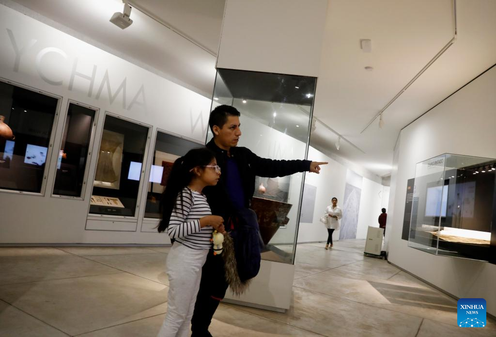 LIMA, 18 mayo, 2024 (Xinhua) -- Personas visitan la exposición de la colección de piezas procedentes del Santuario Arqueológico de Pachacamac, destacando objetos de las culturas Lima, Wari, Ychma e Inca, durante el Día Mundial de los Museos, en el Museo de Sitio Pachacamac, en el sur de Lima, Perú, el 18 de mayo de 2024. (Xinhua/Mariana Bazo)