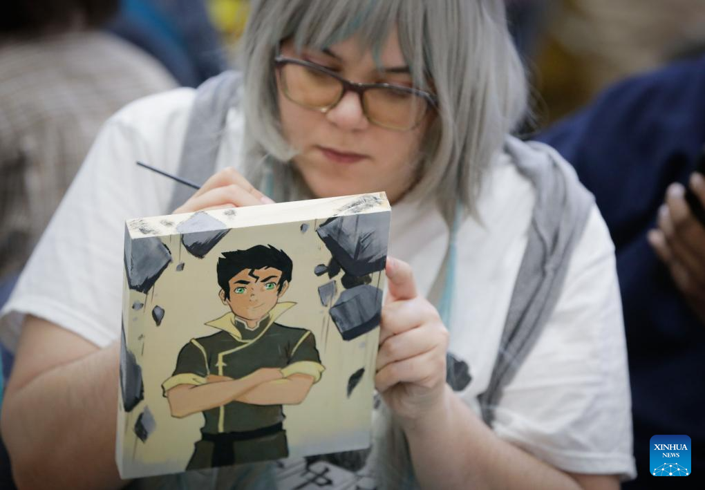 VANCOUVER, 20 mayo, 2024 (Xinhua) -- Imagen del 19 de mayo de 2024 de una artista de cómics trabajando en su cómic durante el Festival de Arte del Cómic de Vancouver 2024, en Vancouver, Columbia Británica, Canadá. El Festival de Arte del Cómic de Vancouver, una celebración anual del cómic y la novela gráfica y sus creadores, que incluye una exposición y una feria de vendedores, cuenta este año con más de un centenar de creadores de cómic de todo el mundo. (Xinhua/Liang Sen)