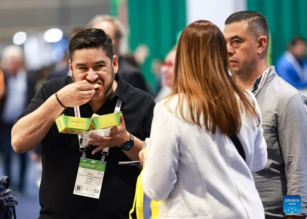 CHICAGO, 20 mayo, 2024 (Xinhua) -- Imagen del 19 de mayo de 2024 de un asistente probando algunos alimentos durante el Espectáculo de la Asociación Nacional de Restaurantes 2024 en McCormick Place, en Chicago, en el estado de Illinois, Estados Unidos. Más de 2.240 expositores participaron en el espectáculo. (Xinhua/Joel Lerner)