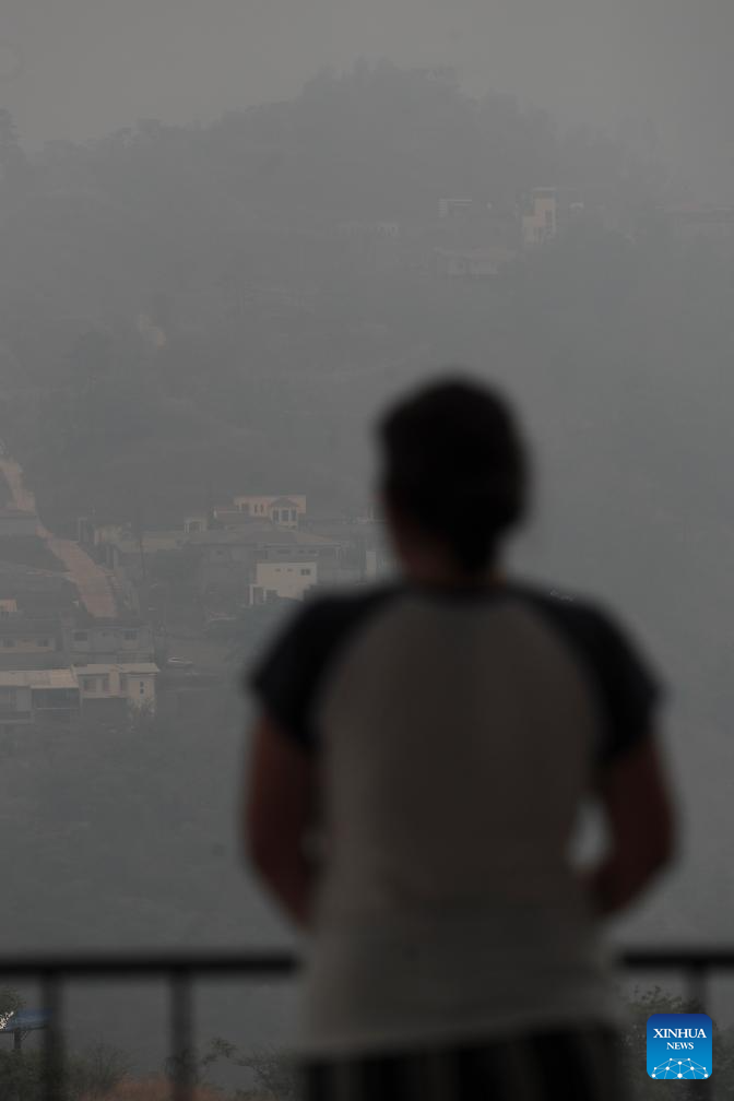 TEGUCIGALPA, 20 mayo, 2024 (Xinhua) -- Imagen del 20 de mayo de 2024 de una densa capa de humo, en Tegucigalpa, Honduras. (Xinhua/Rafael Ochoa)