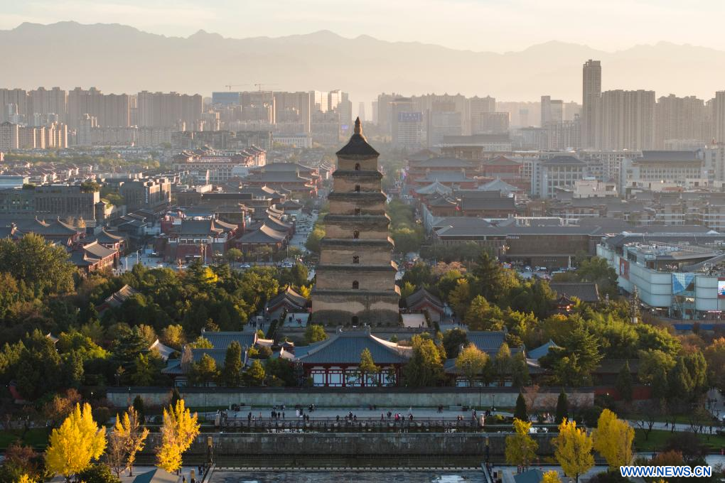 XI'AN, 21 mayo, 2024 (Xinhua) -- Imagen aérea tomada con un dron del 17 de noviembre de 2023 de una vista de la Gran Pagoda del Ganso Salvaje, en Xi'an, en la provincia de Shaanxi, en el noroeste de China. Xi'an, una de las antiguas capitales de la historia china, atrae a un número creciente de turistas en los últimos años. (Xinhua/Shao Rui)