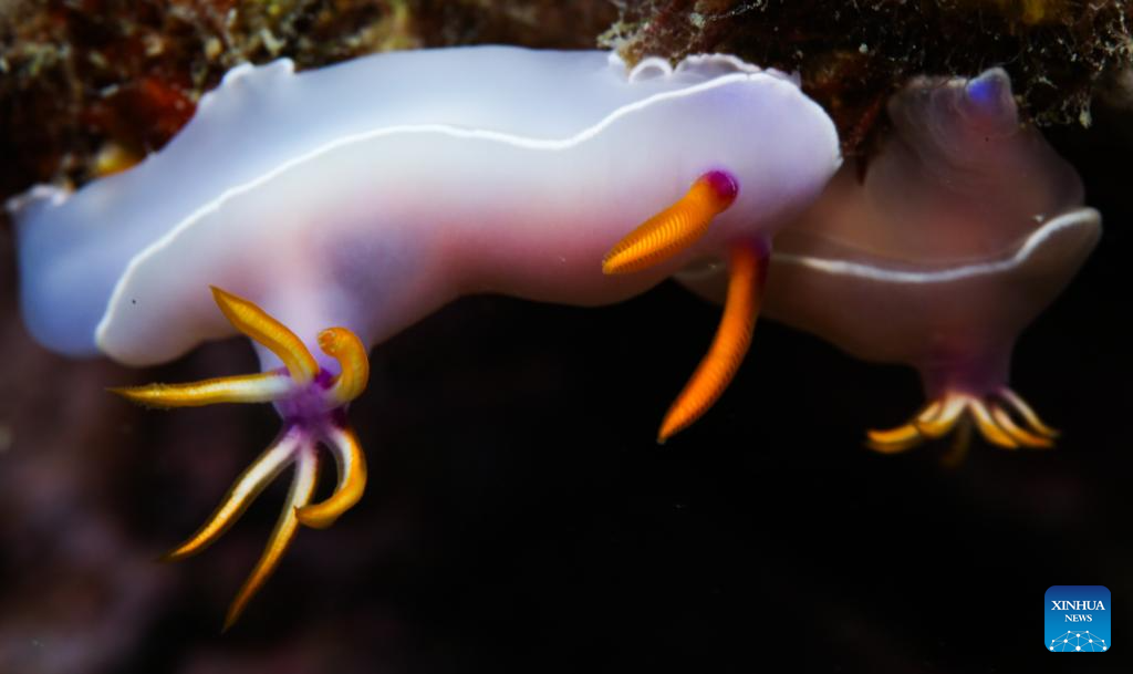 SANYA, 21 mayo, 2024 (Xinhua) -- Imagen del 16 de mayo de 2024 de babosas marinas vistas en el rancho marino de la isla Wuzhizhou, en Sanya, en la provincia de Hainan, en el sur de China. El rancho marino de la isla Wuzhizhou, el primer rancho marino tropical de China, ha logrado avances notables en la restauración ecológica y la conservación de los recursos pesqueros marinos. Los arrecifes artificiales son utilizados en todo el mundo para mejorar la ecología oceánica, mediante la creación de hábitats adicionales para organismos acuáticos y los peces locales. Hasta abril de 2024, el rancho marino ha desplegado aproximadamente 80.000 metros cúbicos de arrecifes artificiales y arrecifes de barcos. Estos esfuerzos han creado un próspero ecosistema marino, con arrecifes de coral, peces, camarones y moluscos. Las estadísticas revelan que más de 51.000 corales han sido trasplantados con éxito en las aguas alrededor de la isla Wuzhizhou. El área ahora alberga más de 300 especies de peces de arrecife de coral, mostrando la rica biodiversidad que se ha nutrido a través de estos esfuerzos de conservación. (Xinhua/Yang Guanyu)