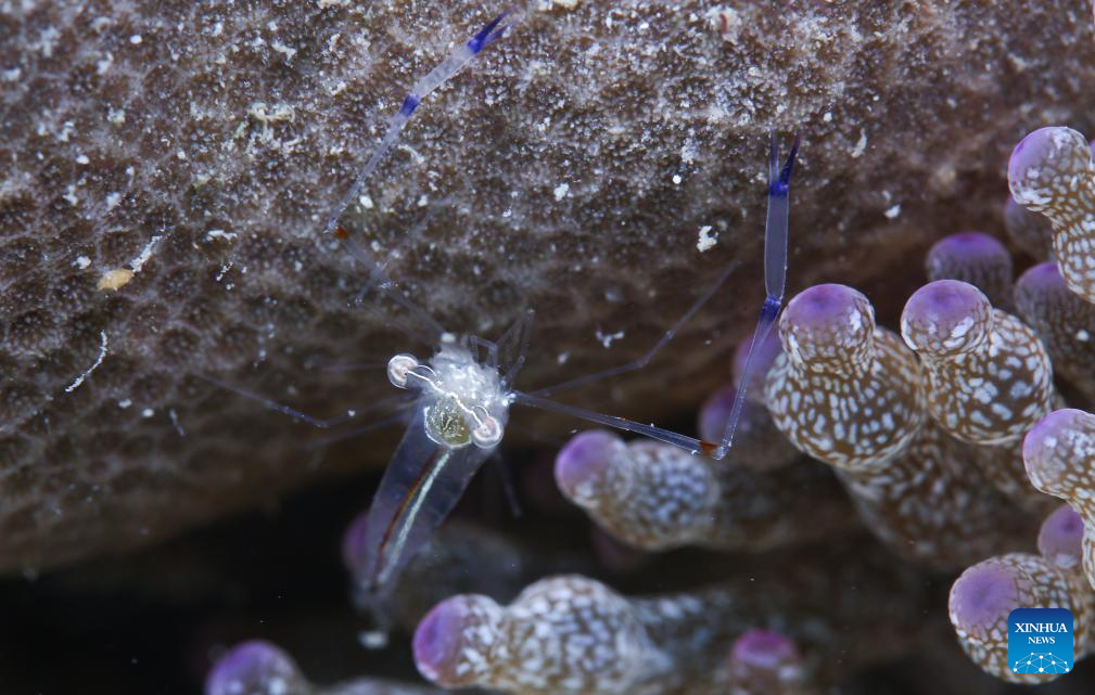 SANYA, 21 mayo, 2024 (Xinhua) -- Imagen del 15 de mayo de 2024 de un camarón limpiador de Pederson visto en el rancho marino de la isla Wuzhizhou, en Sanya, en la provincia de Hainan, en el sur de China. El rancho marino de la isla Wuzhizhou, el primer rancho marino tropical de China, ha logrado avances notables en la restauración ecológica y la conservación de los recursos pesqueros marinos. Los arrecifes artificiales son utilizados en todo el mundo para mejorar la ecología oceánica, mediante la creación de hábitats adicionales para organismos acuáticos y los peces locales. Hasta abril de 2024, el rancho marino ha desplegado aproximadamente 80.000 metros cúbicos de arrecifes artificiales y arrecifes de barcos. Estos esfuerzos han creado un próspero ecosistema marino, con arrecifes de coral, peces, camarones y moluscos. Las estadísticas revelan que más de 51.000 corales han sido trasplantados con éxito en las aguas alrededor de la isla Wuzhizhou. El área ahora alberga más de 300 especies de peces de arrecife de coral, mostrando la rica biodiversidad que se ha nutrido a través de estos esfuerzos de conservación. (Xinhua/Yang Guanyu)