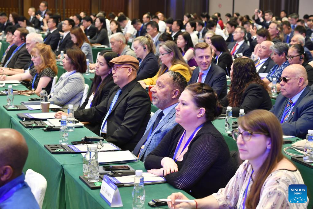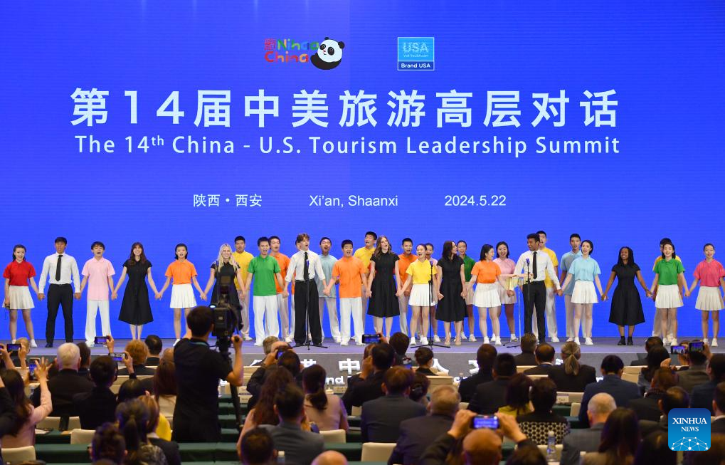 XI'AN, 22 mayo, 2024 (Xinhua) -- Imagen del 22 de mayo de 2024 de una escena durante la XIV Cumbre de Liderazgo Turístico China-Estados Unidos, llevada a cabo en Xi'an, en la provincia de Shaanxi, en el noroeste de China. La cumbre, inaugurada en Xi'an el miércoles, tiene como lema "Ampliando los viajes y el turismo entre China y Estados Unidos e intercambios entre los pueblos". Ha sido coorganizada por el Ministerio de Cultura y Turismo de China, el Gobierno Popular de la provincia de Shaanxi, el Departamento de Comercio estadounidense y Brand USA. (Xinhua/Shao Rui)