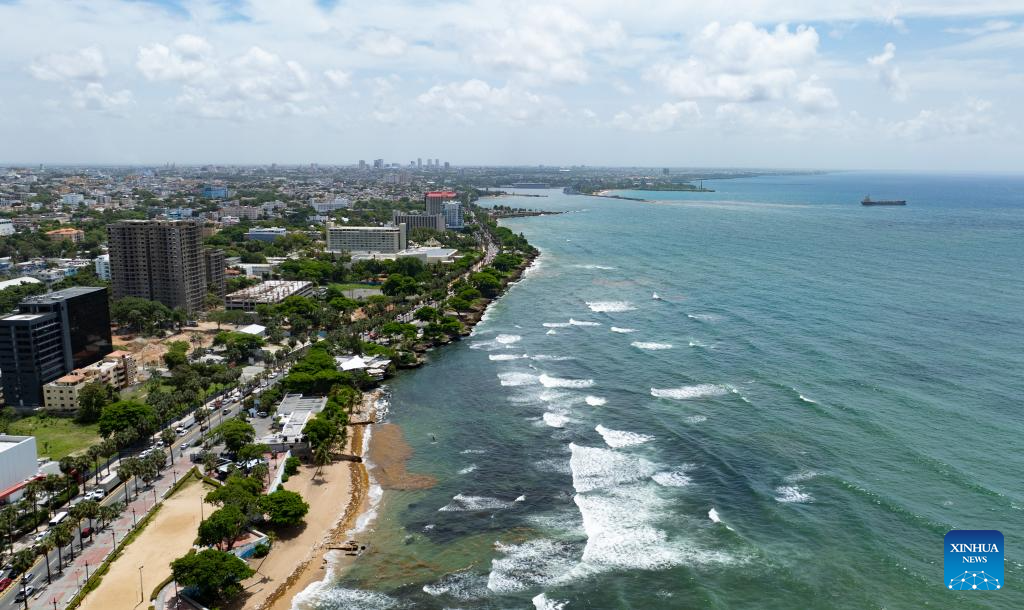 SANTO DOMINGO, 22 mayo, 2024 (Xinhua) -- Vista aérea tomada con un dron el 21 de mayo de 2024 de la costa de Santo Domingo, República Dominicana. Los abundantes recursos turísticos hacen que la ciudad sea atractiva para los turistas. (Xinhua/Li Mengxin)