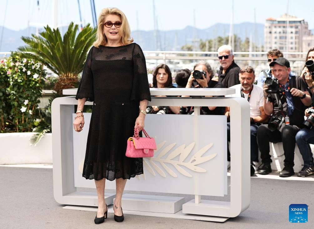 CANNES, 22 mayo, 2024 (Xinhua) -- La actriz francesa, Catherine Deneuve, posa durante una sesión fotográfica para la película "Marcello Mio" en el 77 Festival de Cine de Cannes, en Cannes, en el sur de Francia, el 22 de mayo de 2024. (Xinhua/Gao Jing)