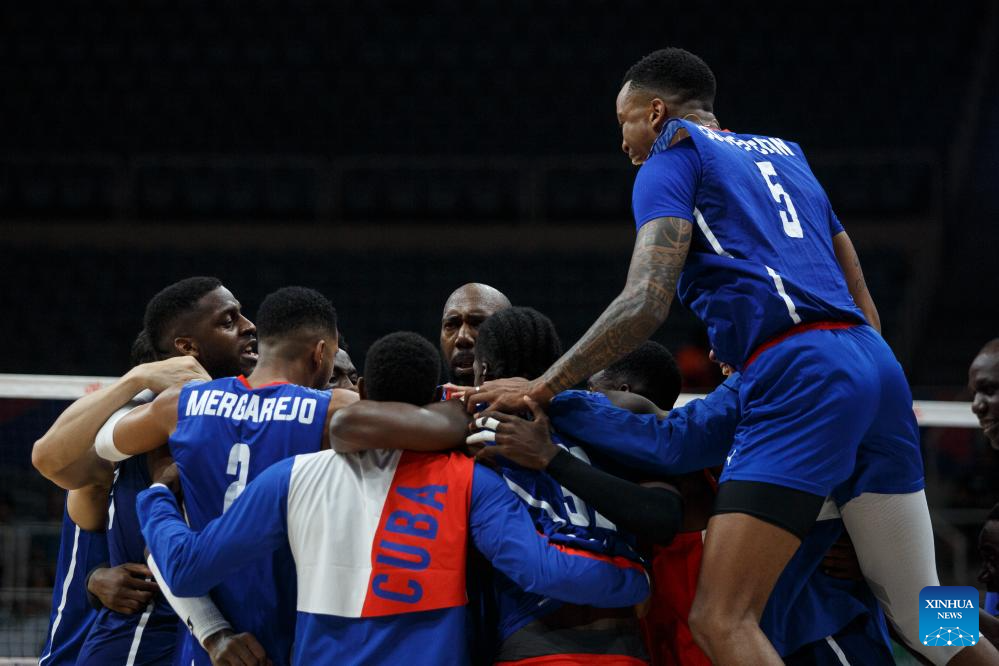 RIO DE JANEIRO, 23 mayo, 2024 (Xinhua) -- Jugadores de Cuba festejan al término del partido de la ronda preliminar de la Liga de Naciones de Voleibol 2024 masculina de la Federación Internacional de Voleibol (FIVB) entre Cuba y Alemania, en Río de Janeiro, Brasil, el 23 de mayo de 2024. (Xinhua/Claudia Martini)
