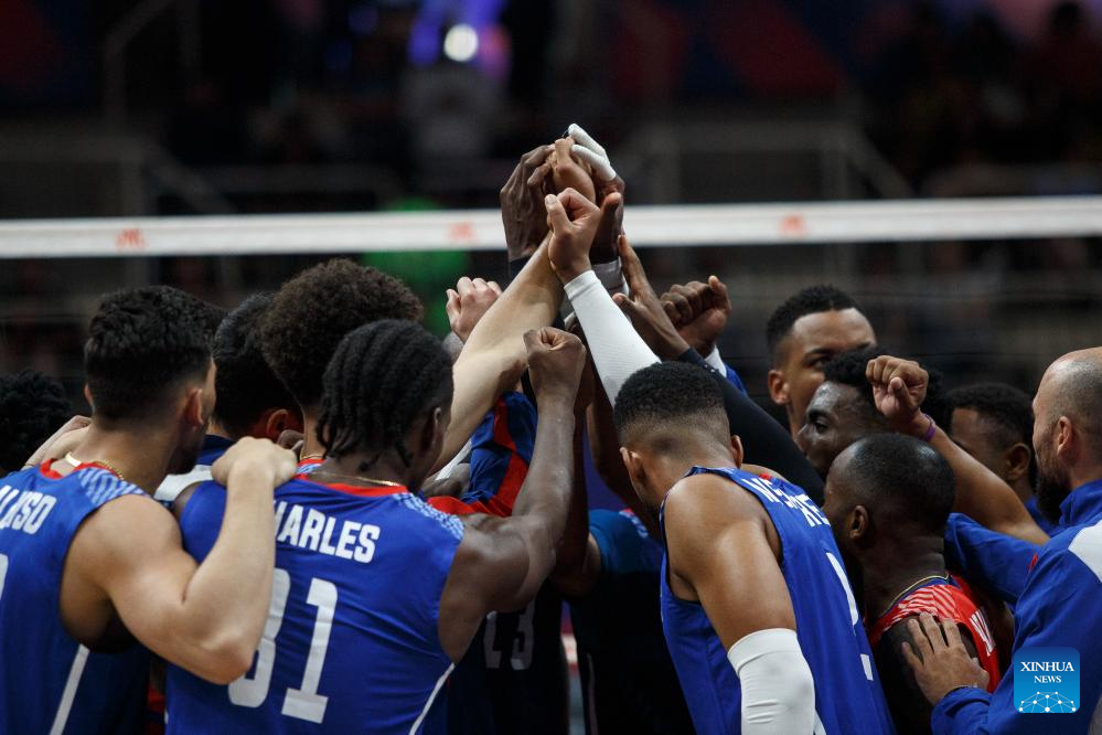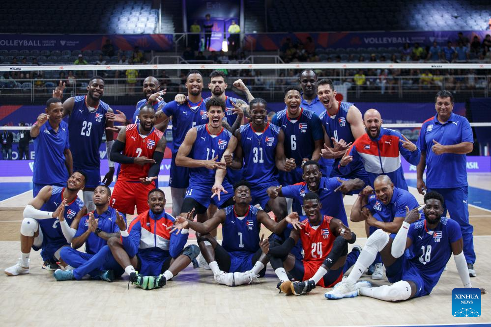 RIO DE JANEIRO, 23 mayo, 2024 (Xinhua) -- Jugadores de Cuba posan para una fotografía al término del partido de la ronda preliminar de la Liga de Naciones de Voleibol 2024 masculina de la Federación Internacional de Voleibol (FIVB) entre Cuba y Alemania, en Río de Janeiro, Brasil, el 23 de mayo de 2024. (Xinhua/Claudia Martini)