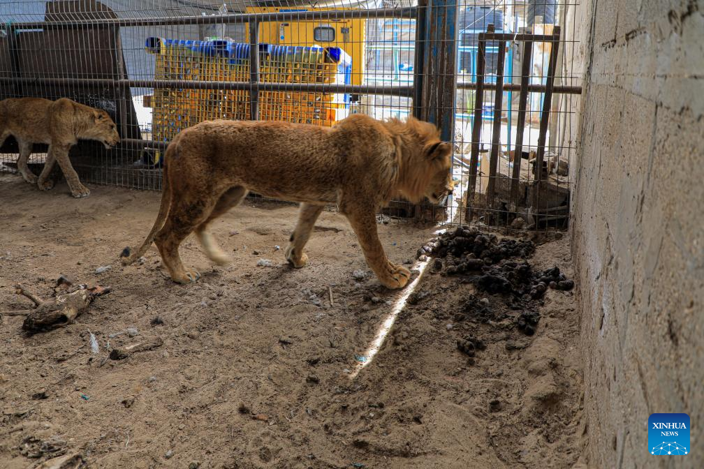 GAZA, 24 mayo, 2024 (Xinhua) -- Imagen del 23 de mayo de 2024 de leones evacuados del Zoológico de Rafah en una instalación de guardería, en la ciudad de Khan Younis, en el sur de la Franja de Gaza. Estos animales han sido evacuados debido al actual conflicto palestino-israelí. (Xinhua/Rizek Abdeljawad)