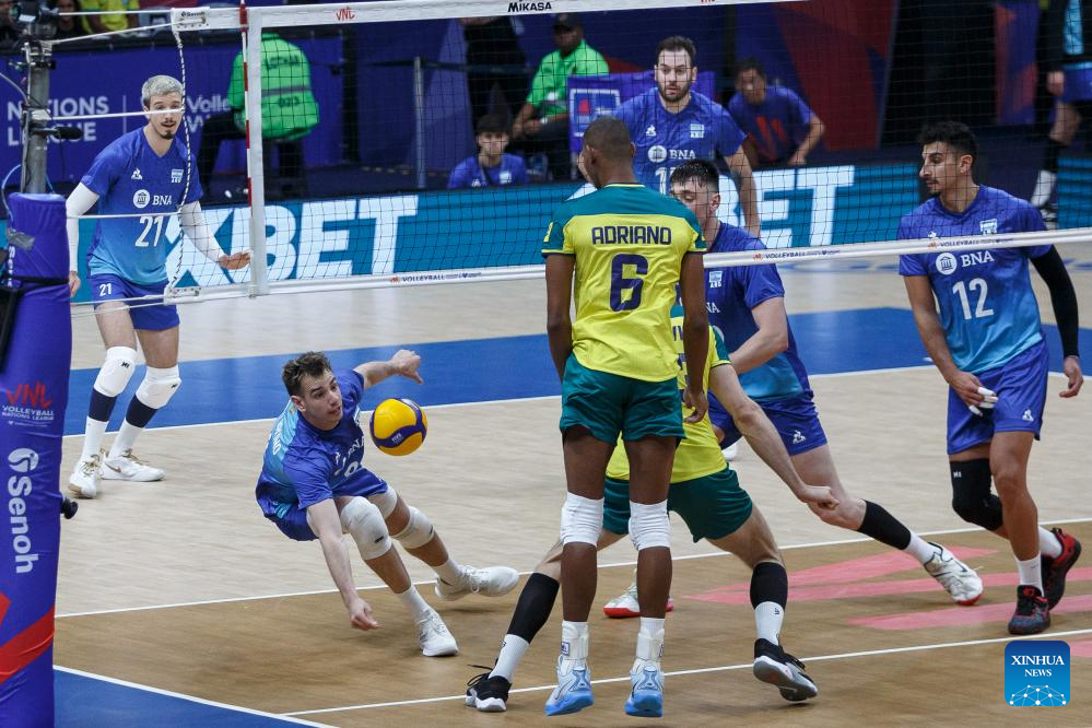 Partido de la ronda preliminar de la Liga de Naciones de Voleibol 2024 masculina de la FIVB entre Argentina y Brasil