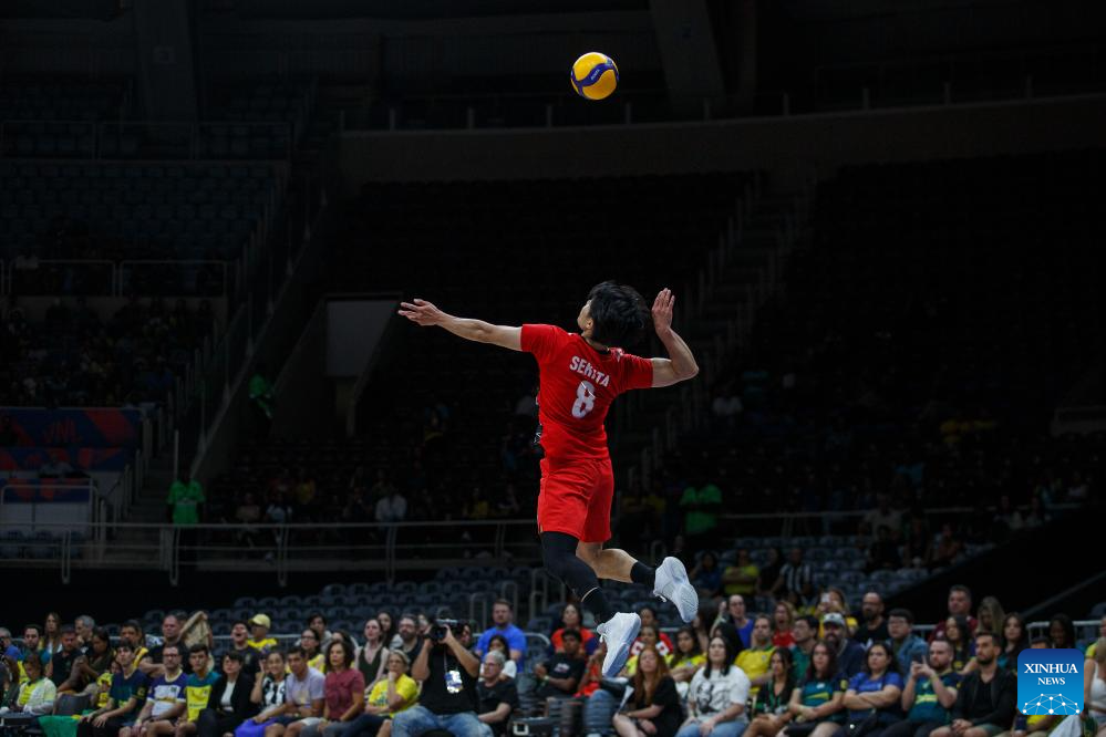 RIO DE JANEIRO, 24 mayo, 2024 (Xinhua) -- Imagen el 23 de mayo de 2024 de Masahiro Sekita, de Japón, sirviendo el balón durante el partido de la ronda preliminar de la Liga de Naciones de Voleibol 2024 masculina de la Federación Internacional de Voleibol (FIVB) entre Japón y Serbia, en Río de Janeiro, Brasil. (Xinhua/Claudia Martini)