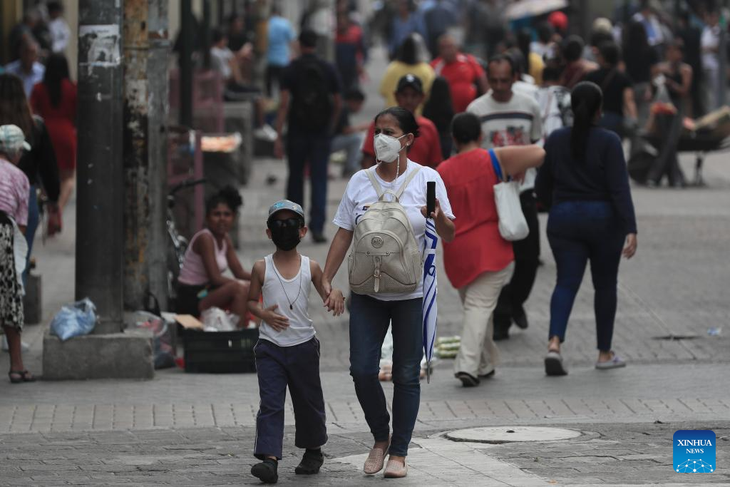 TEGUCIGALPA, 23 mayo, 2024 (Xinhua) -- Una mujer y un niño se protegen con mascarilla por una densa capa de humo, en Tegucigalpa, Honduras, el 23 de mayo de 2024. La presidenta de Honduras, Xiomara Castro, decretó el miércoles estado de emergencia ambiental en su país con el fin de tomar medidas para defender las áreas protegidas y zonas de producción de agua en el país centroamericano. (Xinhua/Rafael Ochoa)