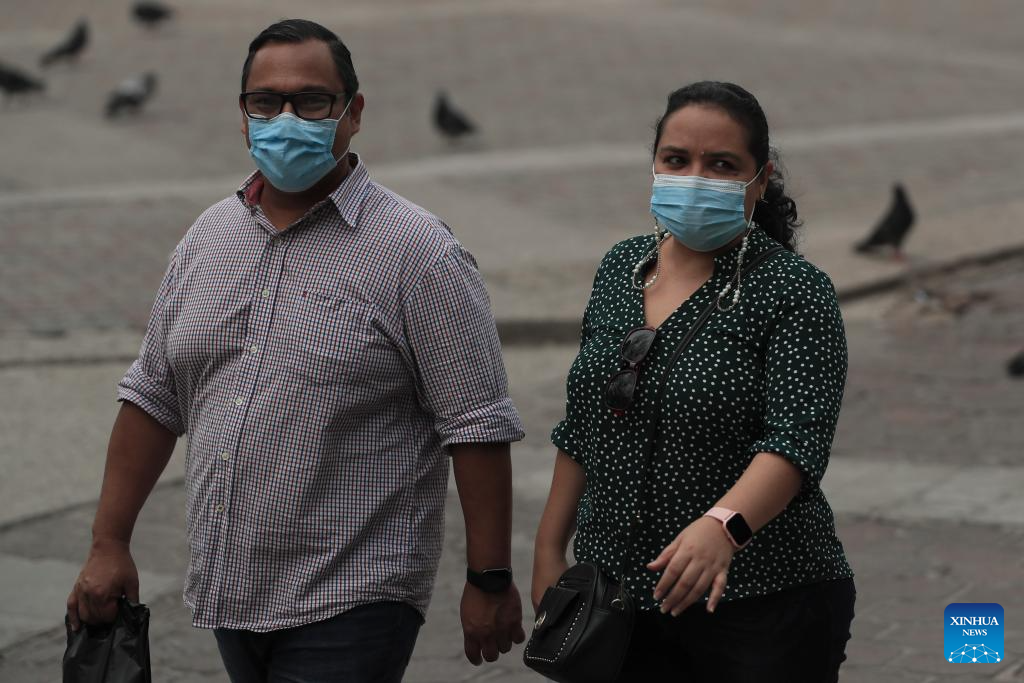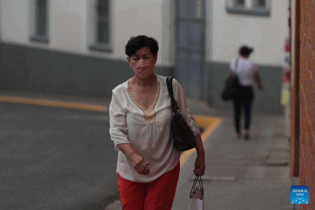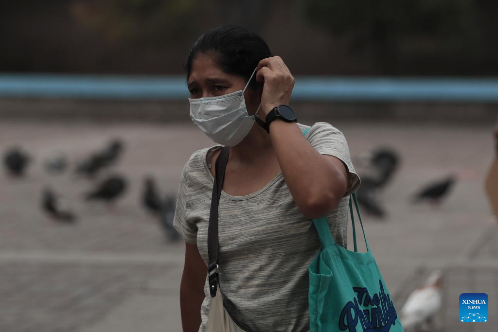 TEGUCIGALPA, 23 mayo, 2024 (Xinhua) -- Una mujer se protege con mascarilla por una densa capa de humo, en Tegucigalpa, Honduras, el 23 de mayo de 2024. La presidenta de Honduras, Xiomara Castro, decretó el miércoles estado de emergencia ambiental en su país con el fin de tomar medidas para defender las áreas protegidas y zonas de producción de agua en el país centroamericano. (Xinhua/Rafael Ochoa)