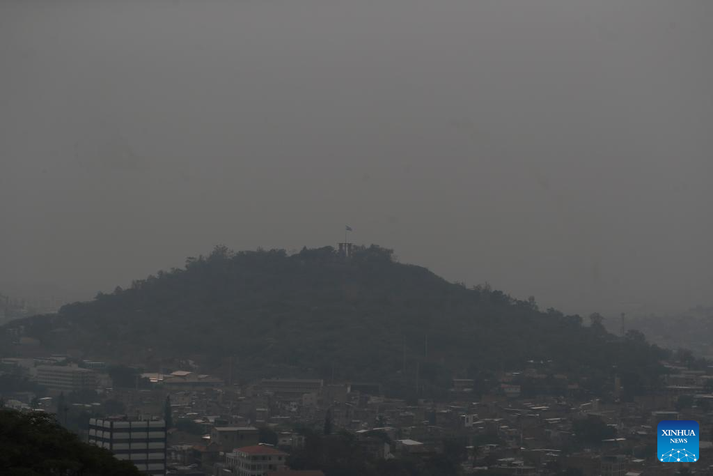 TEGUCIGALPA, 23 mayo, 2024 (Xinhua) -- Imagen del 23 de mayo de 2024 de un sector de la ciudad cubierto por una densa capa de humo, en Tegucigalpa, Honduras. La presidenta de Honduras, Xiomara Castro, decretó el miércoles estado de emergencia ambiental en su país con el fin de tomar medidas para defender las áreas protegidas y zonas de producción de agua en el país centroamericano. (Xinhua/Rafael Ochoa)