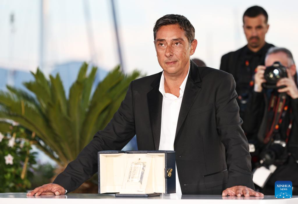 CANNES, 26 mayo, 2024 (Xinhua) -- Imagen del 25 de mayo de 2024 del director portugués Miguel Gomes posando después de ganar el premio al Mejor Director por la película "Grand Tour" durante la ceremonia de clausura de la edición 77 del Festival de Cine de Cannes, en Cannes, en el sur de Francia. (Xinhua/Gao Jing)